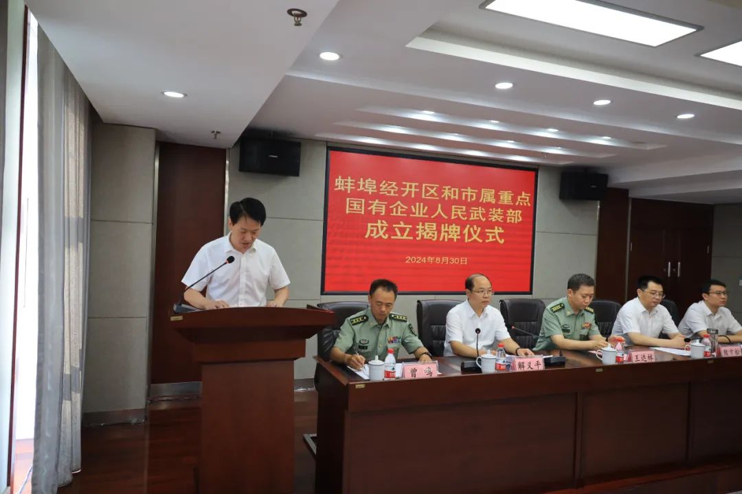 8月30日,蚌埠經(jīng)開區(qū)和市屬重點(diǎn)國(guó)有企業(yè)人民武裝部成立揭牌儀式在市城投公司舉行。蚌埠軍分區(qū)司令員王達(dá)林、副市長(zhǎng)熊言松出席揭牌儀式。市城投公司黨委書記、董事長(zhǎng)沈明仕致歡迎辭。蚌山區(qū)委、市委組織部、市委編辦、市發(fā)改委、市國(guó)資委、軍分區(qū)動(dòng)員處、政治工作處以及專武干部代表等參加會(huì)議。