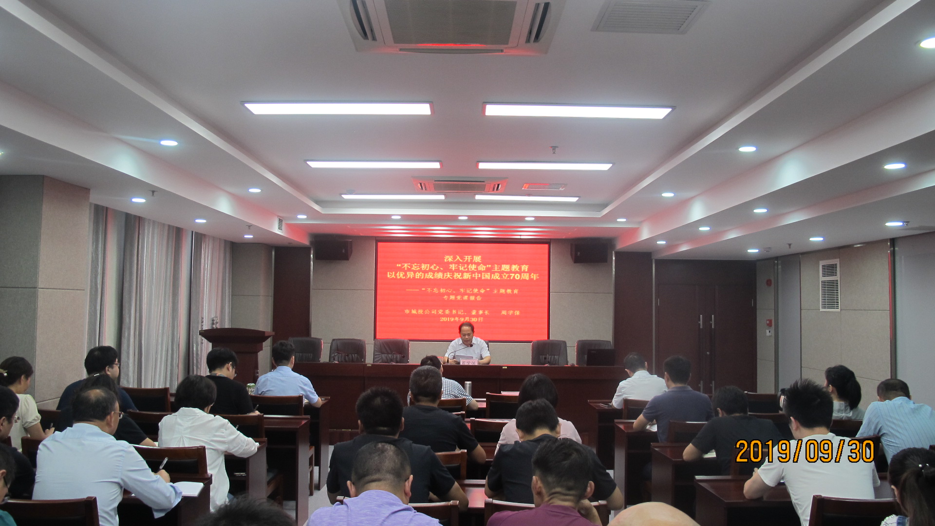 為隆重慶祝我們偉大祖國成立70周年、進一步交流探討“不忘初心、牢記使命”主題教育工作,市城投公司黨委書記、董事長周學保同志為公司全體員工上以“深入開展‘不忘初心、牢記使命’主題教育,以優(yōu)異的成績慶祝新中國成立70周年”為主題的專...