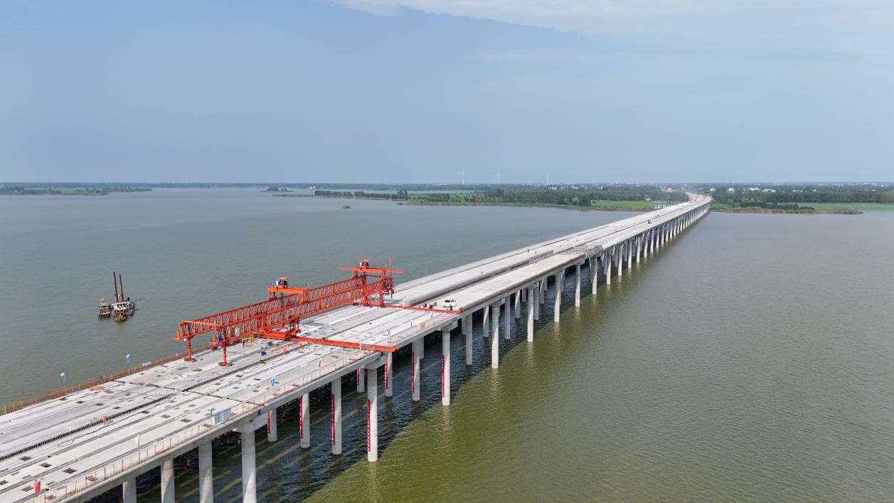 此次貫通的沱湖特大橋是蚌埠城投五蒙高速公路項(xiàng)目重要控制性工程,也是全線最長(zhǎng)的橋梁,由中交第二航務(wù)局承建。大橋西起申集鎮(zhèn)彭集村,向東跨越沱湖至雙忠廟鎮(zhèn)阮圩村。橋面主體全長(zhǎng)3153米,寬27米,為雙向四車道,跨越省級(jí)自然保護(hù)區(qū)沱湖,具有環(huán)保要求高,施工難度大等特點(diǎn)。